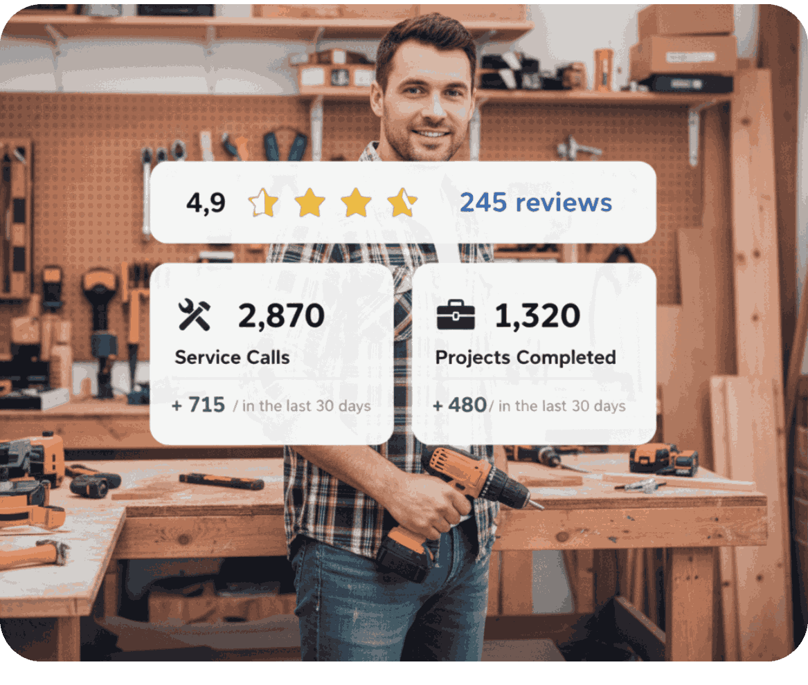 "Boost Visibility, Build Trust, and Win More Jobs—No Matter Your Trade. Electricians, plumbers, roofers, or handymen—your local market is waiting. With our expert strategies, you’ll not only show up where it counts, but also build lasting trust with every client. It’s time to stand out, get noticed, and dominate your local market—one job at a time.